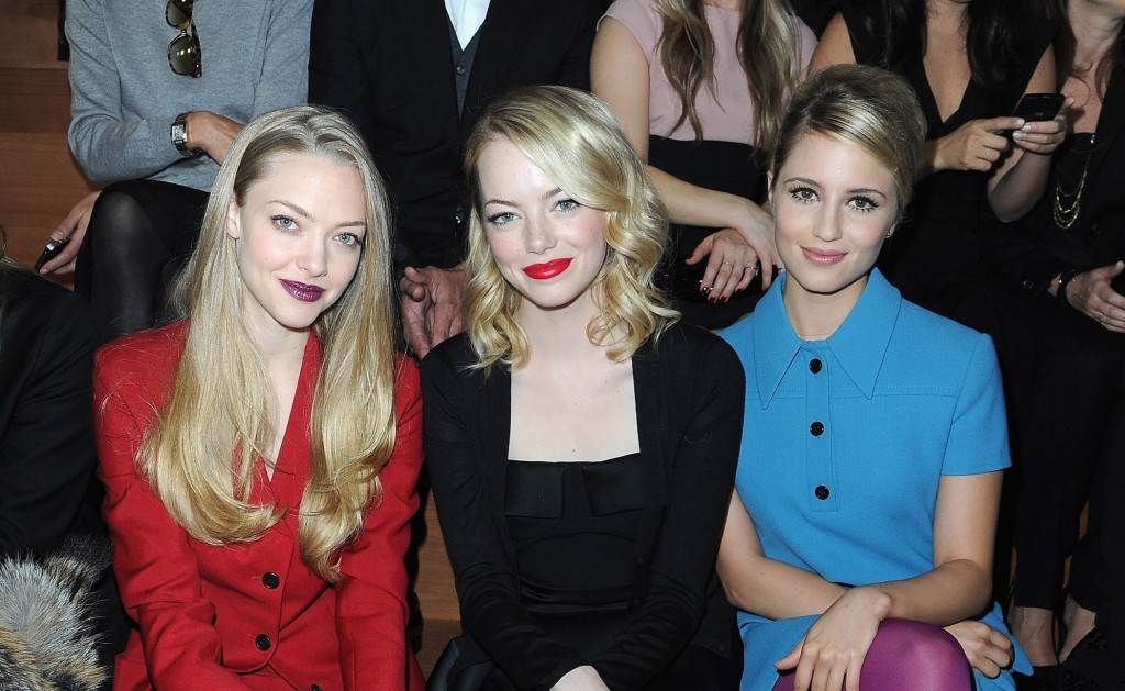 Kao i uvijek dosad, prvi red je vrvio poznatim damama koje nisu htjele propustiti kolekciju Miuccie Prade - AmandaSeyfried, Dianna Agron i Emma Stone tako su sjedile jedna od druge i uživale u pogledu.