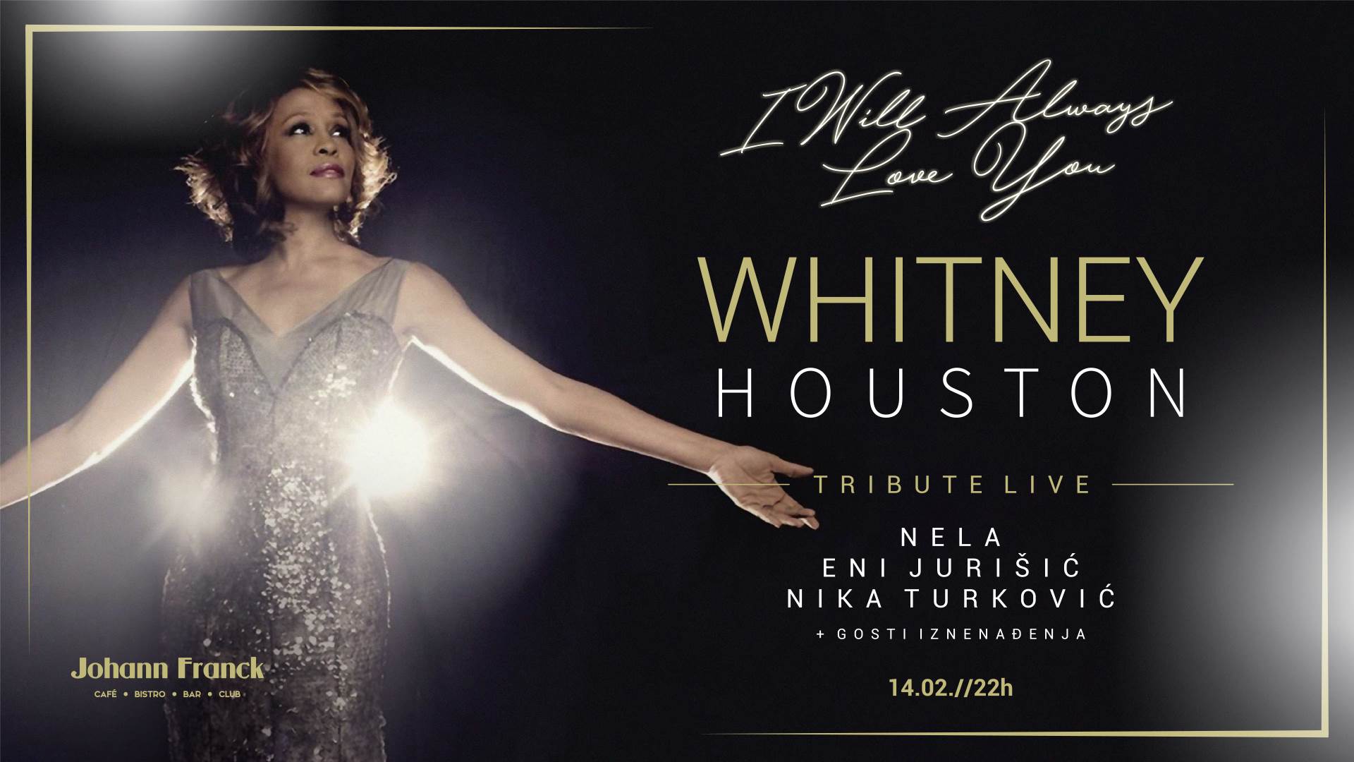 Naime, u veljači i se navršava šest godina kako nas je napustila ova diva iznimnog glasa i vlasnica najvećih ljubavnih hitova. Iza ove ideje stoji ekipa koja je za Božić oduševila koncertom u čast George Michaela, a koju prepoznajemo iz HRT-ovih emisija "Voice" i "A strana". Antonela Đinđić - Nela, Nika Turković i Eni Juriši , tri su djevojke koje će uz pratnju banda izvesti najveće hitove velike Whitney poput: "I'm every woman", "One moment in time", "Run to you", "How Will I know" i "I wanna dance with somebody".
