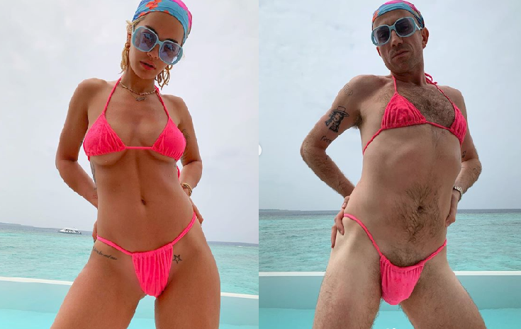"Mislim da ću morati saznati svoju veličinu grudnjaka, uvijek kupim krivi broj.", napisala je pjevačica ispod fotografije i oduševila pratitelje. Njezin prijatelj Nick Grimshaw koji također odmor provodi na Maldivima, odlučio se našaliti s Ritom i sam obući premali bikini.