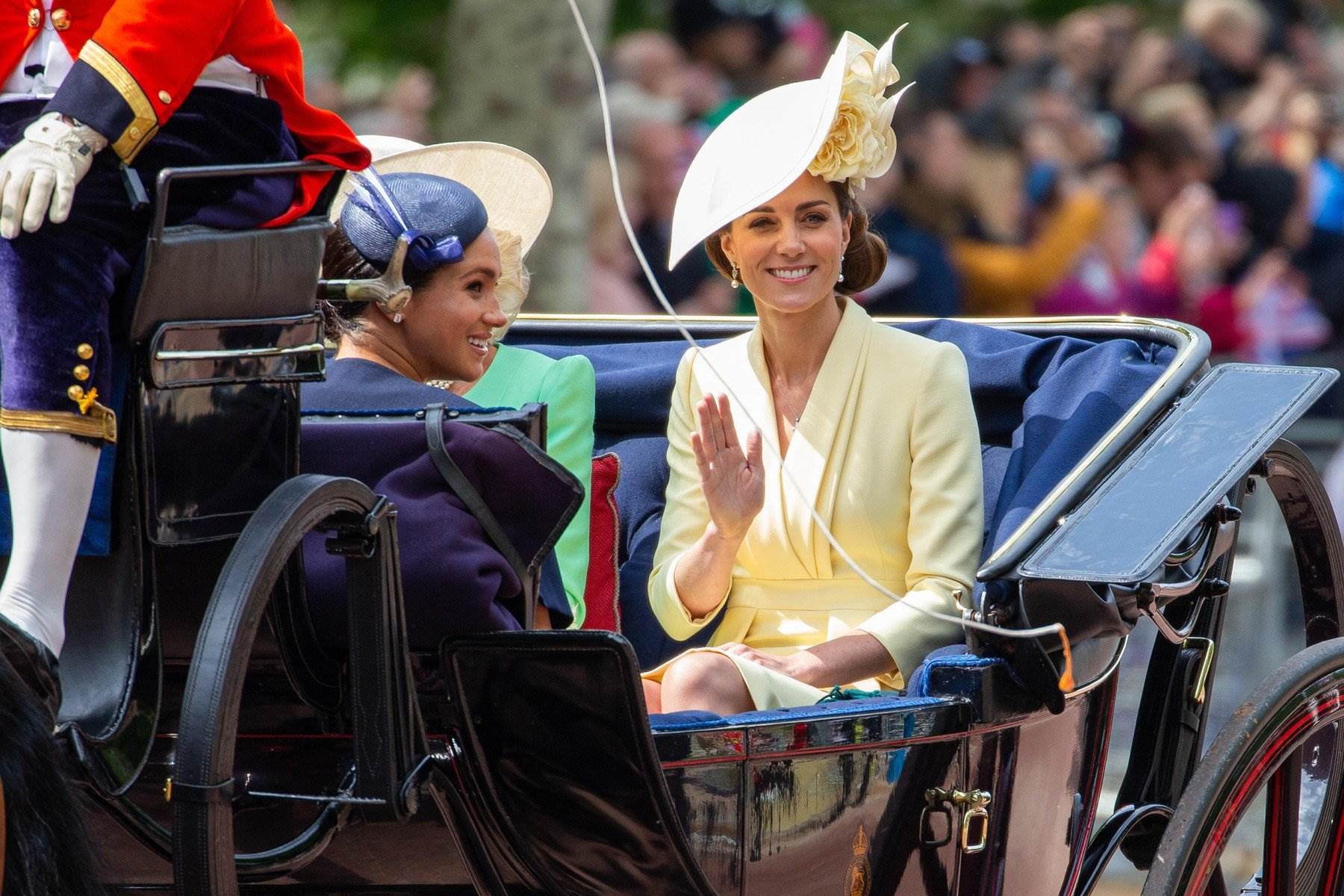 Kate Middleton, vojvotkinja od Cambridgea, poznata je po svojim elegantnim izdanjima. Na posljednjem događaju pojavila se u svijetlo plavoj čipkastoj haljini s potpisom modnog dizajnera Elie Saab. Kate je haljinu upotpunila velikim plavim šeširom, koji je bio vrlo sličan onom koji je vojvotkinja Meghan nosila na prošlogodišnjoj ceremoniji 'Trooping the colour'. Iako se razlikuju u boji, oba šešira su široko obrubljena, vrlo sličnog materijala i nošena pod istim kutem. Plava boja bila je česta pojava na prvom danu utrka 'Royal Ascot'. Iako je razlog vjerojatno puka slučajnost, bitno je napomenuti se upravo plava boja najčešće povezuje s kraljevskom obitelji i njihovom vojskom.