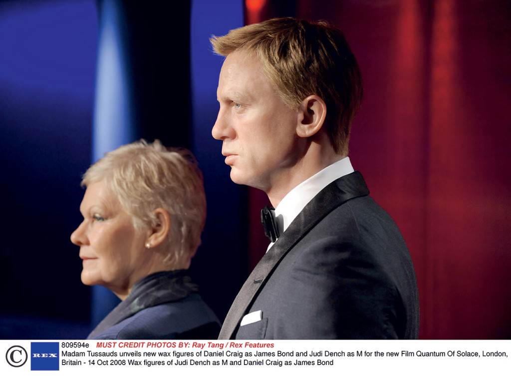 Craigova figura ima crno odijelo koje je dizajnirao Tom Ford, dok je Judi Dench svojoj dvojnici donirala kostim koji je nosila u posljednjem filmu ‘Casino Royale’. Daniel Craig treći je Bond izliven u vosku, a prije njega figure su dobili Sean Connery i Pierce Brosnan.