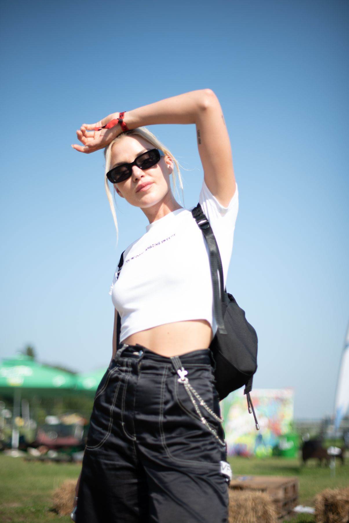 Ova Porečanka je za događaj u Osijeku odabrala casual kombinaciju, odjenuvši bijeli majicu kratkih rukava te tamne jeans hlače visokog struka koje su ukrašene lancima. Svoju dugu plavu kosu je svezala u jednostavnu pundžu te s pramenovima koji joj padaju preko lica dodala crtu opuštenosti. Kao modne dodatke imala je crne sunčane naočale i crni ruksak, a cijelu odjevnu kombinaciju je začinila tenisicama koje su savršeno pristajale ovom stylingu.