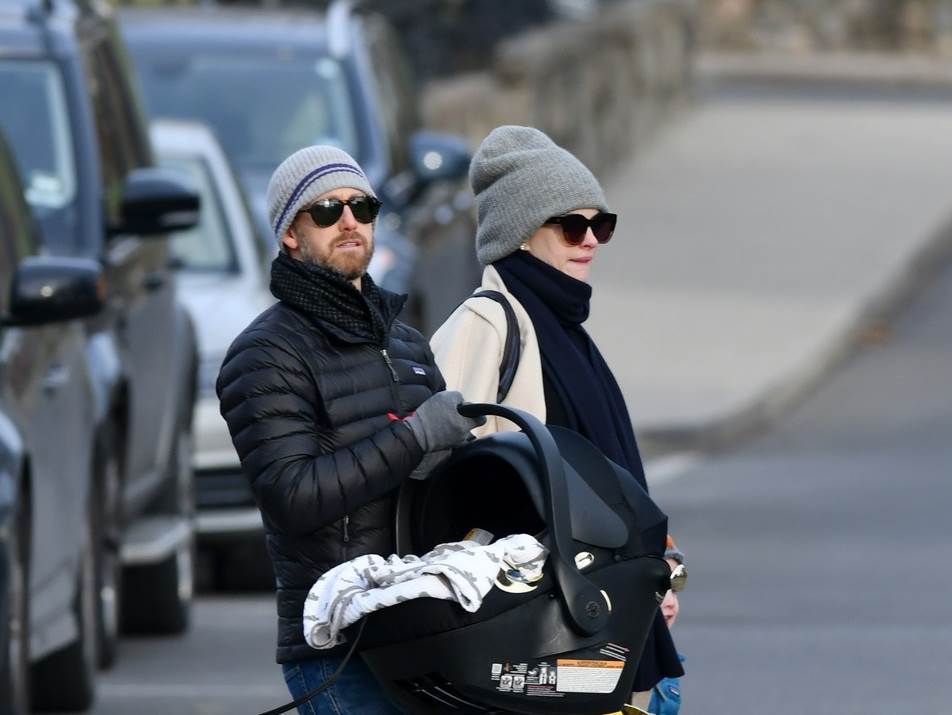 Adam je nosio bebu u maloj nosiljci, dok je Anne pazila na njihovog trogodišnjeg sina. U jednom trenutku je obratila pažnju na fotografe i nije bila naročito sretna što ih vidi. Glumica se potpuno povukla iz javnosti prije tri tjedna i u tajnosti rodila drugo dijete, za koje se još ne zna je li dječak ili djevojčica.