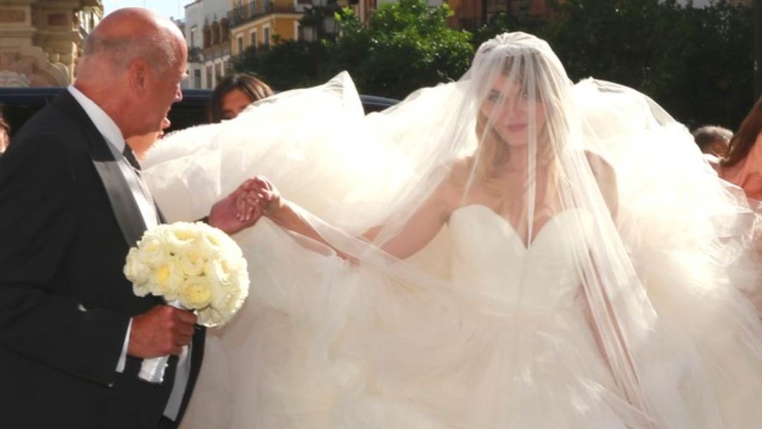 Francisco je na vjenčanju nosio tradicionalno odijelo nalik uniformi, no sve su oči bile uperene u mladenku, koja je imala impresivnu vjenčanicu. Naime, sastojala se od nekoliko metara slojevite tkanine i dugačkog vela pa joj je njezinih petero djeveruša pomagalo dok je hodala od automobila do crkvenog oltara.