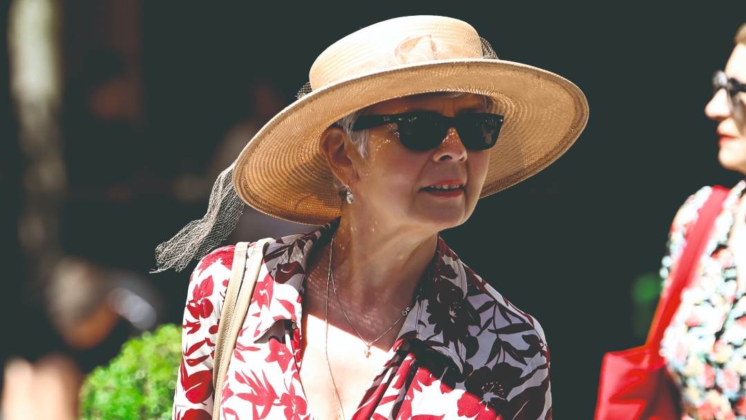 Bijela duga dekoltirana haljina s crvenim uzorkom i crvenim kožnim remenom naglasila je figuru i struk bivše političarke, a kombinaciju je upotpunila pletenim šeširom i crnim naočalama.