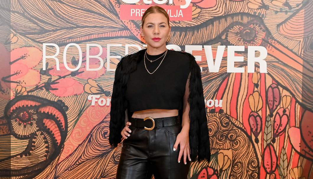 Domaća glumica Ana Begić-Tahiri zablistala je u kožnom outfiru. Za reviju je odabrala crne kožne hlače, crne štikle i crni top s resicama. Modni odabir dodatno je naglasila nakitom.