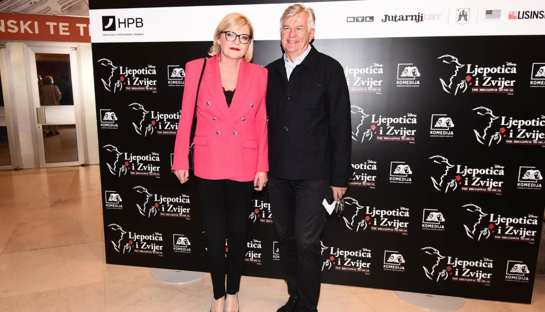 Supružnici su se pojavili na premijeri mjuzikla 'Ljepotica i zvijer' u Zagrebu i očarali modnim skladom. Željka je odabrala ružičasti sako i crne hlače sa štiklama iste boje dok je Dubravko blistao u crnoj kombinaciji s bijelom košuljom s uzorkom.