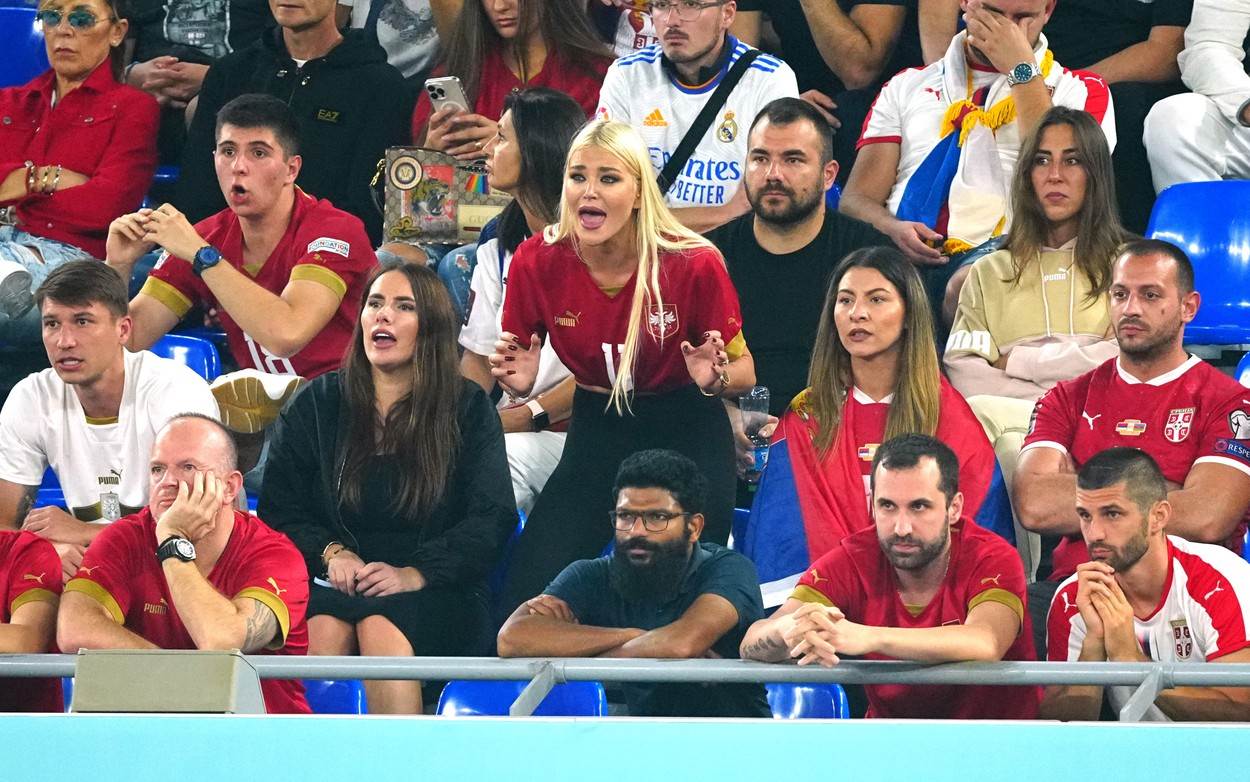Uznemirenost i strasti nije skrivala ni sama Sofija koja je reprezentaciju bodrila s tribina, odnosno svog zaručnika Luku Jovića.