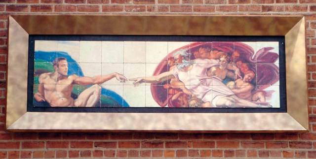 Kad je umjetnik Mark Schmidt doznao da holivudska zvijezda George Clooney snima novi film ‘The Ides of March’ samo nekoliko metara od njegova studija u gradu Cincinnatiju, odlučio mu je privući pozornost. Naime, na zidu svoje zgrade naslikao je metar i pol visoki mural za koji je inspiraciju našao u poznatome muralu koji krasi svod Sikstinske kapele! - Ovo je posveta glumcu kojem smo na taj način poželjeli dobrodošlicu. ‘God’s Gift to Women’ naziv je murala koji bi prekrasno izgledao na zidu njegove kuće na jezeru Como. Naravno da ću mu ga darovati, moj je jedini uvjet da ga ja postavim ondje - rekao je umjetnik.