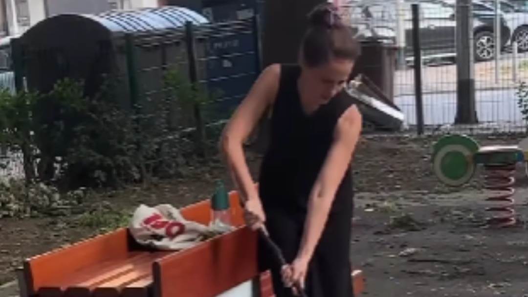 Korana Gvozdić (40) uredila je parkić u Zagrebu. Smetalo joj je što je po betonu hrpa lišća pa je uzela granu od stabla i s njome pomela park. To je trajalo neko vrijeme, a njezin partner Ivan Šarić (39) sve je zabilježio u videu.