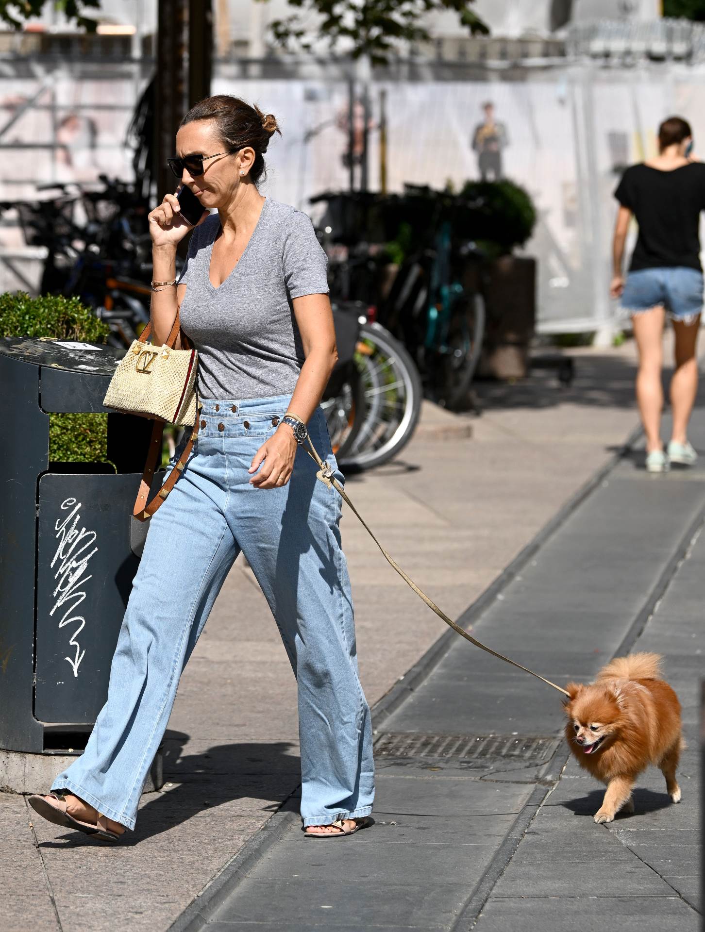 Za šetnju špicom odabrala je jednostavnu kombinaciju - široke traperice i sivi T-shirt, a dašak glamura ovom outfitu dala je torbica modne kuće Valentino. Iva je tijekom šetnje Preradovićevim trgom bila na mobitelu.