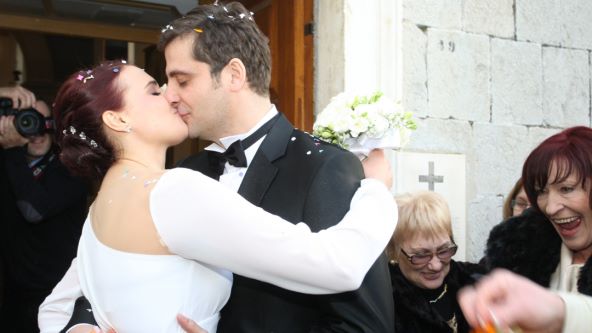 Mladenka, inače bivša Miss Universe Dalmacije, tom je prilikom zablistala u romantičnoj bijeloj vjenčanici modnog dvojca Arileo, a Robert je bio vrlo šarmantan u crnom odijelu s bijelom košuljom i leptir mašnom.