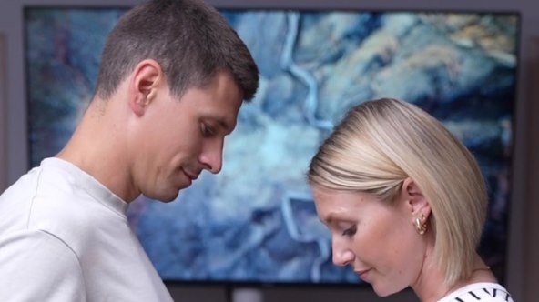 Na snimci ona i Filip dobiju kape s natpisima 'mama', odnosno 'tata', a prijatelji joj, dok oko njih lete baloni i konfeti, iz ruku oduzmu bocu piva i zamijene je sokom od naranče.