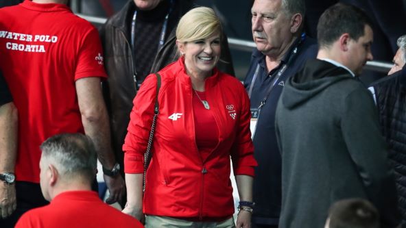 Bivša hrvatska predsjednica Kolinda Grabar-Kitarović (54) nije propustila vaterpolsku utakmicu između Hrvatske i Mađarske. Kamere su je ‘ulovile’ na tribinama, a bila je u društvu predsjednika Hrvatskog olimpijskog odbora, Zlatka Mateše (73).