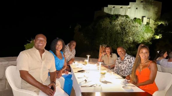 'Službeno smo sletjeli u Hrvatsku! Proveli smo dan istražujući stari grad Dubrovnik, gdje je snimljena Igra prijestolja uključujući scene u zaljevu Black Water. Cookie i ja imali smo izvanredno iskustvo s Rodneyem, Holly, Mikeom i Natashom u restoranu Nautika, a hrana je bila nevjerojatna! Cookie i Rodney veliki su obožavatelji Igre prijestolja, tako da je ovo definitivno bio uzbudljiv dan putovanja za njih', napisao je uz serijal fotografija.