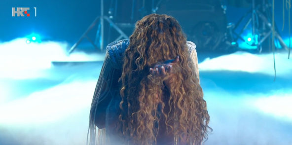 Sada je na Dori imala vrlo atraktivan nastup. Najprije se na bini pojavila tako da je kosom prekrila lice, a onda se ustala i pokazala heklani kompletić.