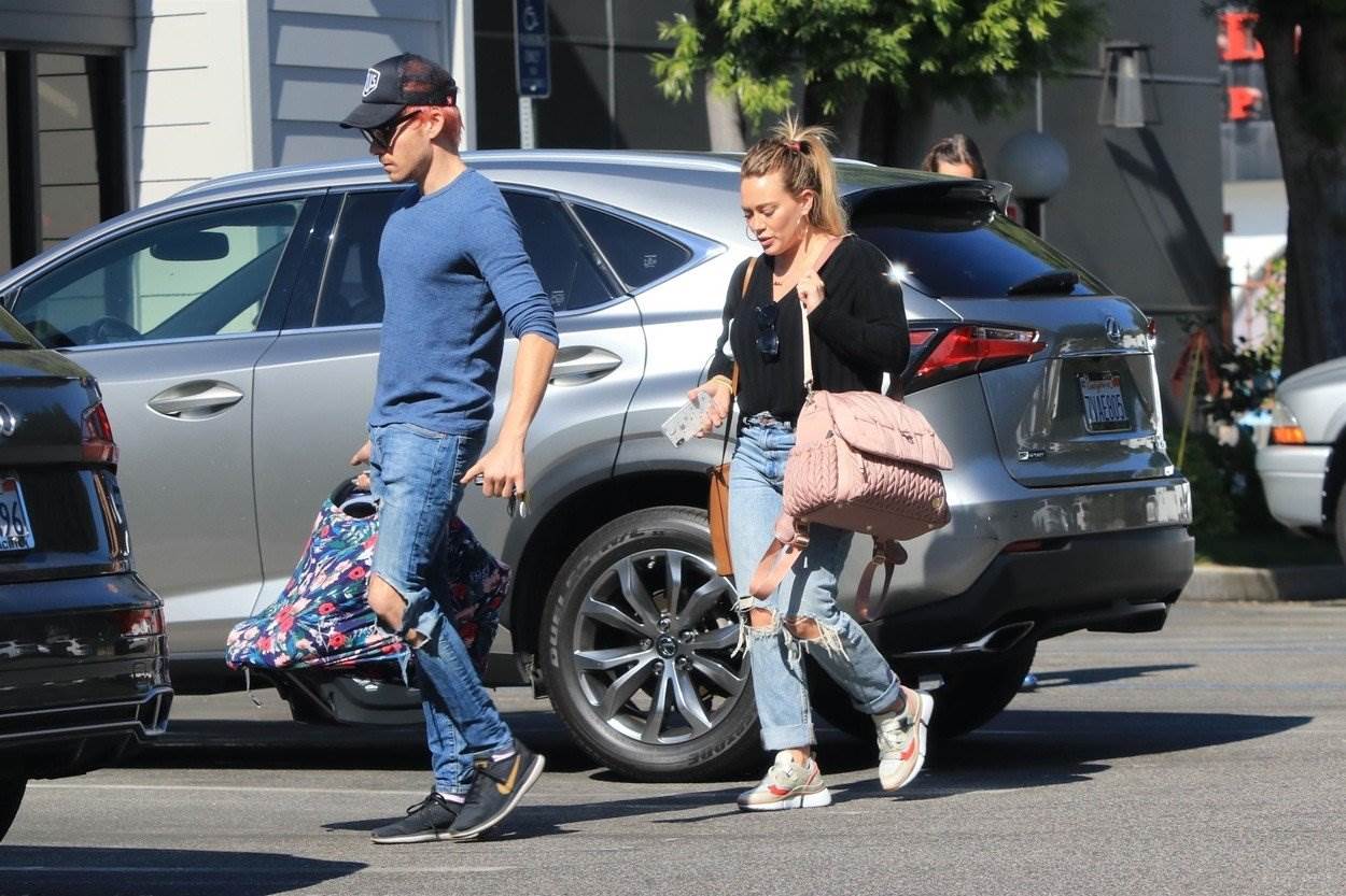 Sada se, desetak dana nakon dolaska kćerkice na svijet, sretna obitelj zaputila u prvu zajedničku šetnju, a ponosni roditelji s malenom su viđeni dok su išli po ručak. Hilary je bila odjevena u poderane traperice i crnu majicu, a njezina figura već sada izgleda odlično. Njezin dragi, Matthew Koma imao je sličan stajling, pa je uz poderane traperice kombinirao plavu majicu.
