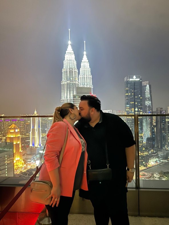 Fascinirali su nas ti njihovi otvoreni marketi, ima i zatvorenih, jer klima je takva kakva je, a vlaga u zraku užasna. Imaju jako puno šoping centara, od onih luksuznih do tržnica koje su na zatvorenom, na katove i to nam je bila glavna zanimacija u ona najvruća vremena, jer smo od kupovine suvenira kao uspomena za sebe završili tako da smo kupili luster. Luster koji je od školjaka, koji smo donijeli doma, koji sada stoji spakiran i čeka mjesto na koje ćemo ga staviti. Ali u svakom slučaju oduševili su nas ti njihovi tradicionalni suveniri, odjeća. Klincima smo kupili od odjeće do sitnica raznih i uglavnom nam je to bio neki glavni dio šopinga, nismo se bavili brendovima i markicama, to nas nije zanimalo, kao što nas ni inače ne zanima. Oduševili su nas i ti tornjevi Petronas koji su glavna turistička atrakcija. Njih smo išli gledati i izbliza i izdaleka, sa svih zgrada, gdje god je najbolji pogled. A najbolji pogled upravo je s ove fotografije gdje smo si dali pusu.