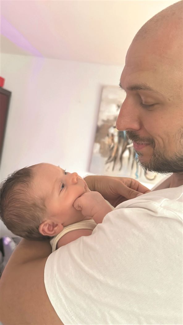 'Tek punimo mjesec dana i zasad mu se sve svodi na jelo i spavanje, iako nas je neki dan iznenadio pa prvi put prespavao skoro šest sati u komadu. Rodio se s 53 cm i 4170 grama i već je tad izgledao kao prava velika beba s dosta kose, pa mu nekad napravim 'beckhamicu' i onda se svi smijemo. Baš je presladak, ovako malen, s tim sitnim nožicama i prstićima… A njegov miris, to je nešto posebno, obožavam. Volim slušati zvukove koje ispušta dok ga mama doji, to mi je jedan od najnježnijih trenutaka koje sam ikad doživio', emotivno opisuje 33-godišnjak.