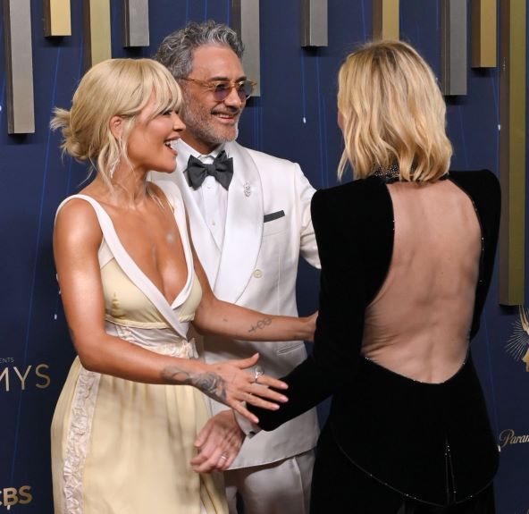 Rita Ora (34) došla je na dodjelu nagrada Emmy u Los Angeles sa svojim suprugom Taikom Waititijem (50). Za ovu priliku odjenula je izazovnu haljinu u žutoj i bijeloj boji, s dubokim dekolteom i prorezom do bedara.
