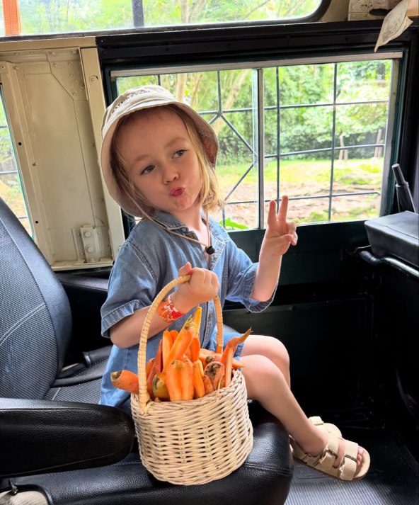 Na jednoj od fotografija pozirala je naslonjena na palmu u jednodijelnom Versace badiću dok ispija kokos, a pažnju je privukla snimka na kojoj Bloom piše svoje ime na pješčanoj plaži. Njegov potez, s obzirom na to da ima samo četiri godine, oduševio je mnoge.