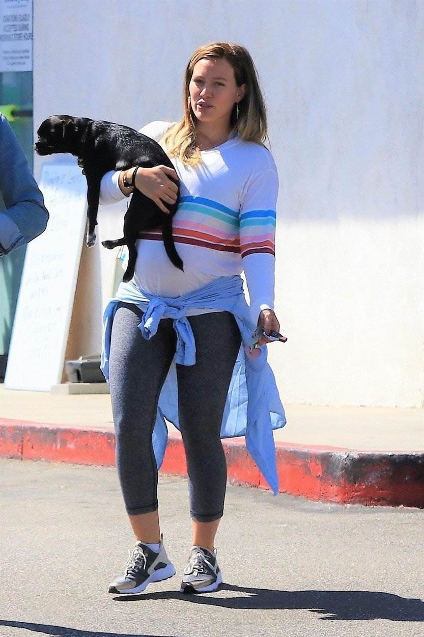 Simpatična plavuša je uživala u romantičnoj šetnji u zagrljaju svog partnera Matthewa Kome s kojim će uskoro dobiti kćer. Gumica bi uskoro trebala roditi, a nedavno se na Instagram profilu požalila kako joj je trudnoća dosta teška i kako jedva čeka popiti čašu vina. Unatoč, problemima koji se vežu uz trudnoću, glumica je izgledala poprilično opušteno i sretno u šetnji s partnerom i psom. Budući otac njezinog djeteta i Hilary navodno su zaručeni, ali par još ništa nije potvrdio. Matthew je glazbeni producent, a u vezi su od prosinca prošle godine.