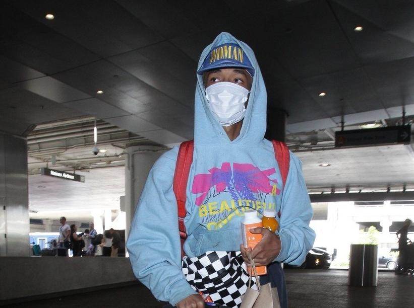 Na lice je stavio medicinsku masku, i kapu s natpisom 'Žene', te hoodie plave boje kojim se pokušao sakriti od obožavateljica. Noseći kofer, vrećicu i ruksak na leđima, Jaden je odao poprilično zanimljiv oblik prijevoza. Naime, Jaden je na aerodrom jurio na romobilu koji mu je očito bio i više nego dovoljno prijevozno sredstvo. Budući da zbog poslovnih obaveza nekoliko dana neće biti s djevojkom, mladom glumicom Odessom Adlon, 19-godišnji Jaden je odlučio pokazati romantičnu gestu i na put je krenuo u njezinoj majici kako bi ona barem na neki način bila s njim.