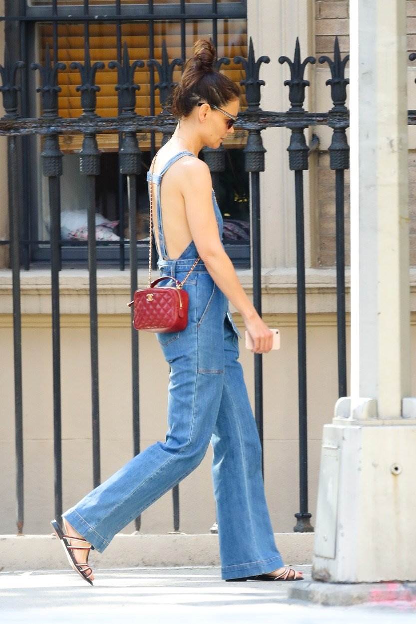 Glumici je društvo na povratku iz kupovine pravio jedan od tjelohranitelja koji je i nosio većinu vrećica, dok se Katie s ležernom punđom i predimenzioniranim sunčanim naočalama prošetala jednom od najprometnijih ulica New Yorka na sebi noseći samo traper kombinezon. Cijelu kombinaciju, 40-godišnjakinja je upotpunila malom crvenom torbicom, a provokativnim odjevnim komadom, bivša supruga Toma Cruisea nije puno ostavila mašti na volju.