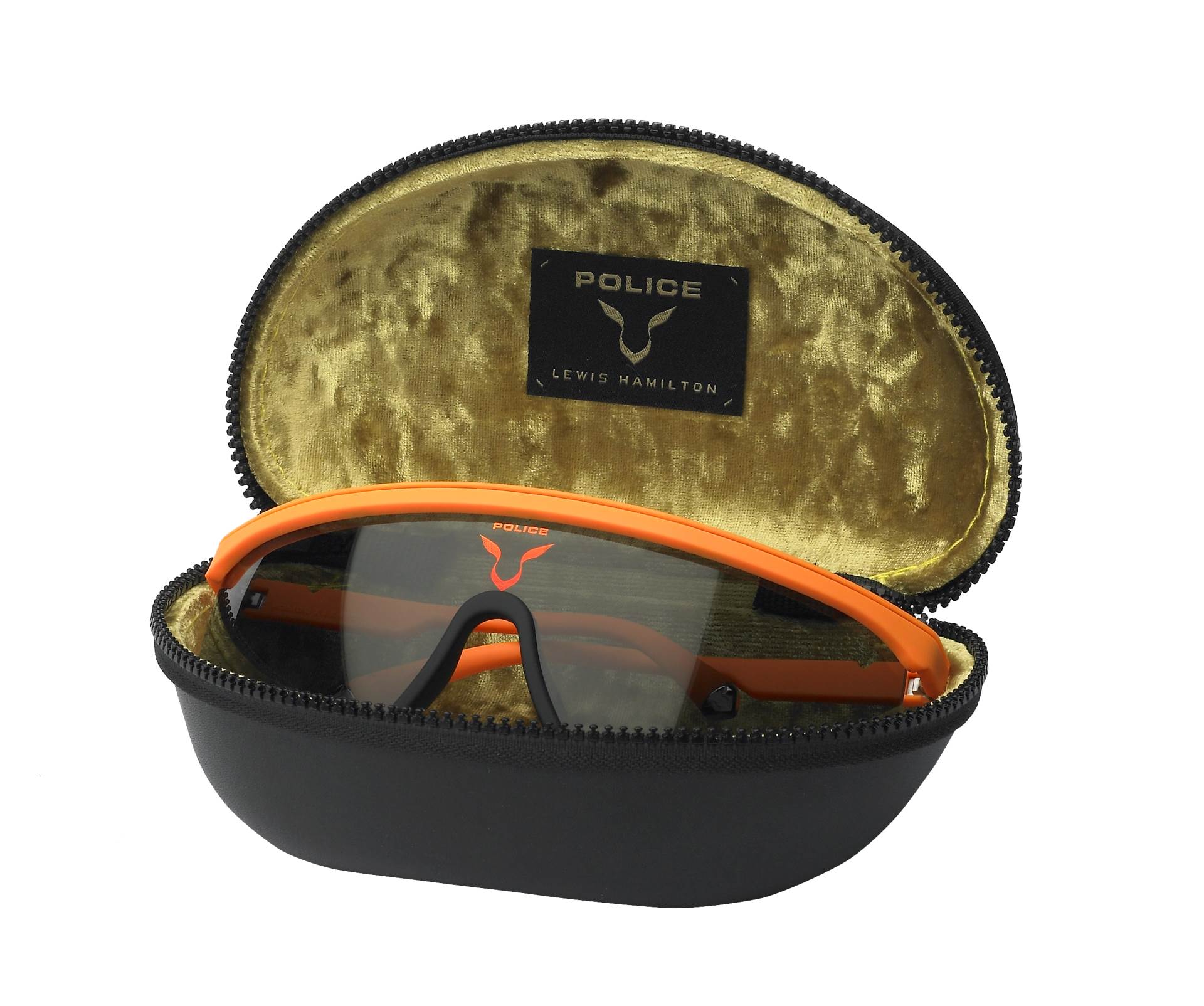 Stil maske čije su linije i materijali inspirirani svijetom sporta, obogaćena modnim detaljima i dekoracijama. Meki gumeni okvir i most jamče maksimalnu udobnost i savršeno pristajanje. Metalna konstrukcija vidljiva je uz gornju traku. Na leći, ispod Police-ovog otisnut je Panther logo Lewisa Hamiltona. Vrhovi ručkica izrađeni su od hipoalergenog titana.