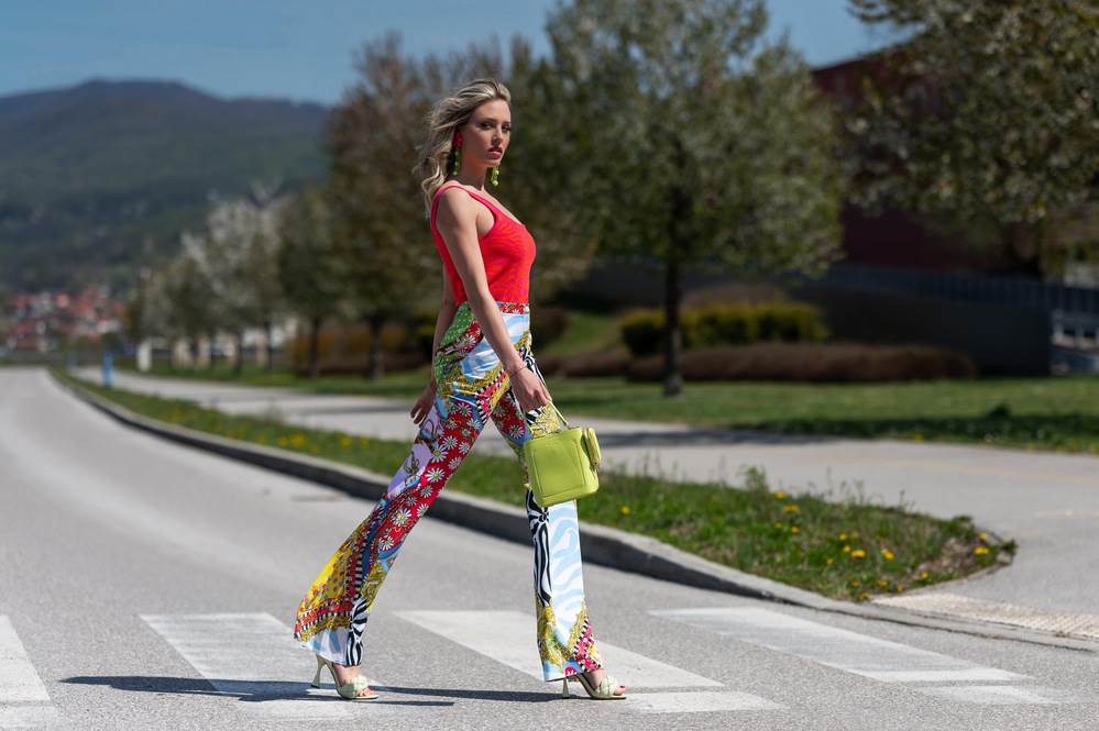 Top – Mohito 139,90 kn; Hlače – HalfPrice, Moschino 1799,90 kn; Torbica – Mohito 199,90 kn; Sandale – Mass 479,90 kn; Naušnice – Mohito 99,90 kn; Westgate Shopping City