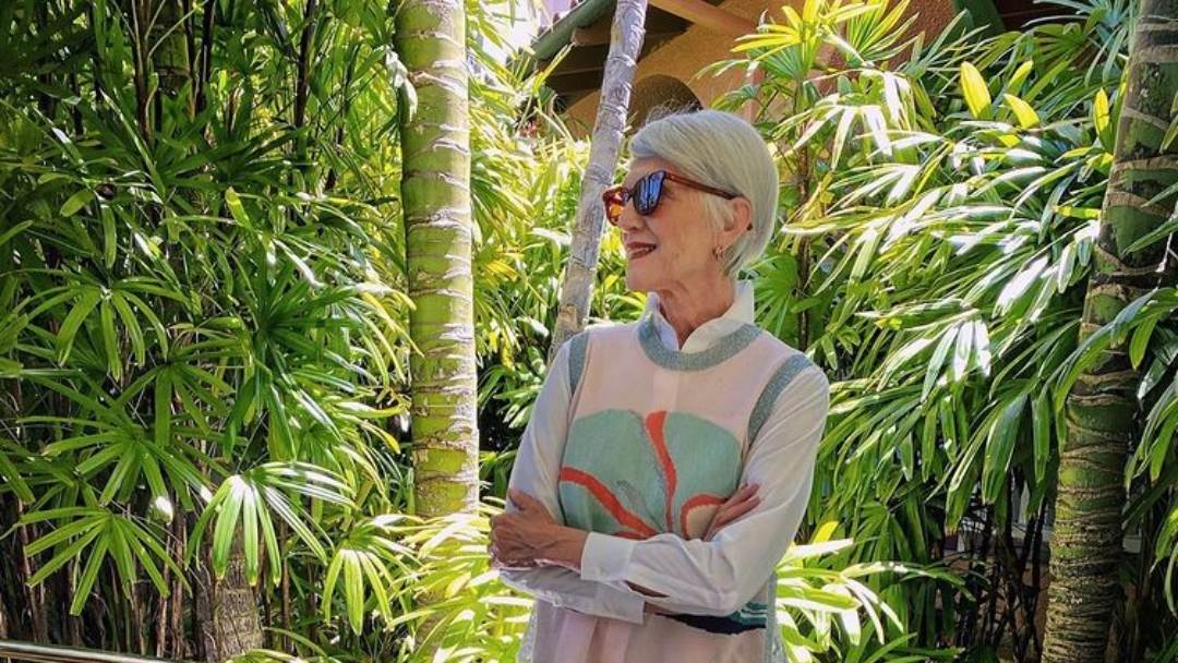 U jednodijelnom kupaćem kostimu s naborima i naušnicama u obliku palme stajala je ponosno pokazujući svoje tijelo, a sve s ciljem da razbije sve društvene norme vezane uz starenje i ono što je dopušteno u određenim godinama.