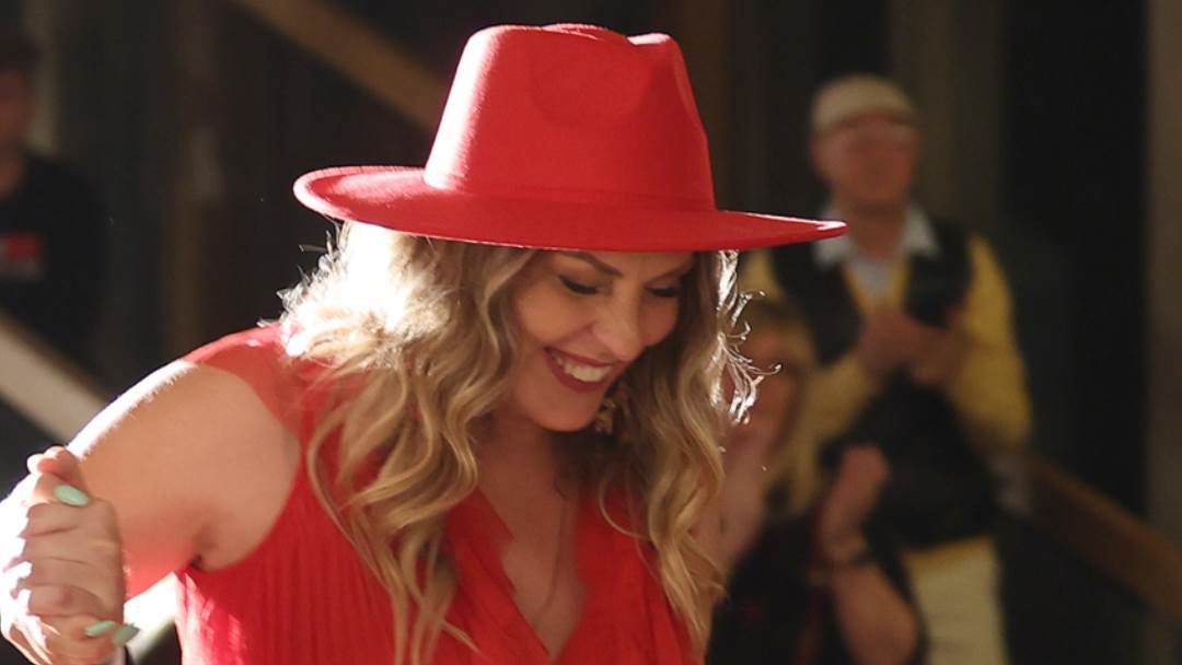 Anđa je nosila vatrenocrvenu haljinu bez rukava koja se u lepršavim slojevima spuštala do poda. Kombinaciju je upotpunila crvenim šeširom i čizmama u istoj boji, a sve je zaokružila valovima u kosi.