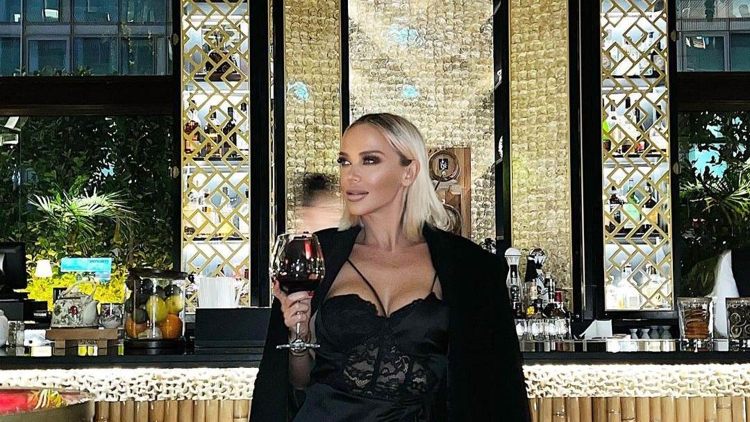 Pjevačica izgleda bolje nego ikad i pozirala je s čašom vina u ruci u atraktivnom, modnom izdanju. Odjenula je crnu haljinu s visokim prorezom i čipkastim korzetom. Uz to je uskladila crni oversized sako i crno zlatne sandale.