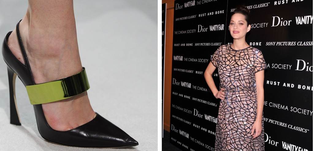 Cijeli set večernjih toaleta, koje su joj poslane od strane tima Rafa Simonsa, belgijskog dizajnera koji je počeo prije svega par mjeseci dizajnirati za Christian Dior, savršeno pristaju njenom senzibilitetu. No, štikle joj stvaraju problem - posljednji crveni tepih filma 'Rust and Bone' jasno je dokazao kako se i Marion bori s hodanjem u špičastim modelima u kojima su i djevojke na pisti jedva koračale.