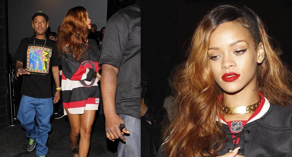 Rihanna je odjenula samo predimenzionirani dres i vrtoglavo visoke štikle kako bi i dalje pomno izgrađivala imidž ghetto ikone, a njena frizura, kao i make up pratili su ovaj stil.