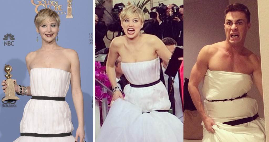 Tako su na Instagram profilima brojih Amerikanaca osvanule fotografije kao simpatičan osvrt na njen modni odabir. Glumac Colton Haynes, prvi je objavio fotografiju sebe umotanog u bijelu plahtu i obljepljenog izolir trakom, imitirajući njenu haljinu. Sliku je naslovio '#GoldenGlobes Bilo je fantastično!' Bez mnogo komenara, jasno je poručio što misli o toaleti.