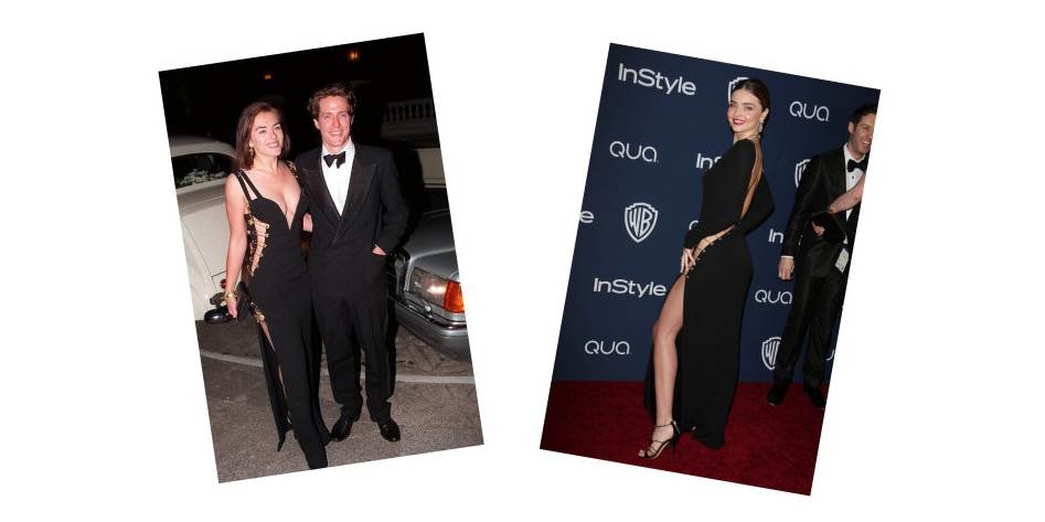 Haljinu u kojoj se glumica Elizabeth Hurley davne 1994. pojavila na premijeri filma 'Četiri vjenčanja i sprovod' ruku pod ruku s Hugh Grantom, potpisuje modna kuća Versace. Crna dugačka kreacija, čiju je prednju i stražnju stranu povezivalo tek nekoliko sigurnosnih kopči, ostala je zapamćena kao jedna od najpoznatijih kreacija kuće Versace.
