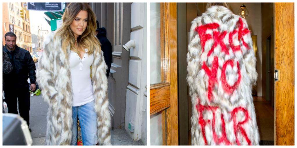 Kim Kardashian, pak je poznata po potpuno suprotnom stajalištu. Krzneni odjevni predmeti zauzimaju velik dio njezinog ormara, zbog čega je završila kao žrtva PETA-inog aktivista koji ju je posuo brašnom. Nakon što je Kim napadnuta, sestra Khloe odmah je prekinula suradnju s udrugom PETA, uz obrazloženje da ne želi podupirati oni koji podupiru nasilje i maltretiranje.