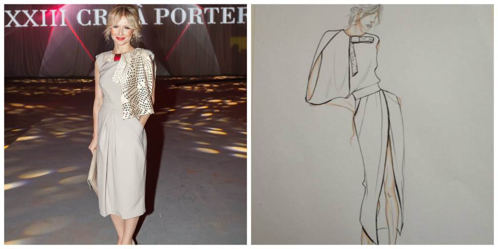 Haljina koju je pjevačica nosila iz nove je kolekcije Arilea predstavljene na prvoj večeri Schwarzkopf Cro A Portera, a inspirirana je retrom i poznatim Parižankama iz tog doba. Kombinacijama materijala svileni georgete u kombinaciji je s alcantara mantilom. Danijela nosi cipele Ivana Ledenka te torbu Mure Pehnec. - Danijela i ja surađujemo već nekoliko godina. Poklopile su nam se karme i uz to što smo dobri prijatelji imamo i odličnu poslovnu suradnju. Danijela je suradnica koja voli poslušati savjete, a to je iznimno bitno. Svake se godine potrudimo da ona izgleda što je moguće bolje, a nadam se da smo i ove godine uspjeli u tome – izjavio je Jurica Pirić iz Arilea.