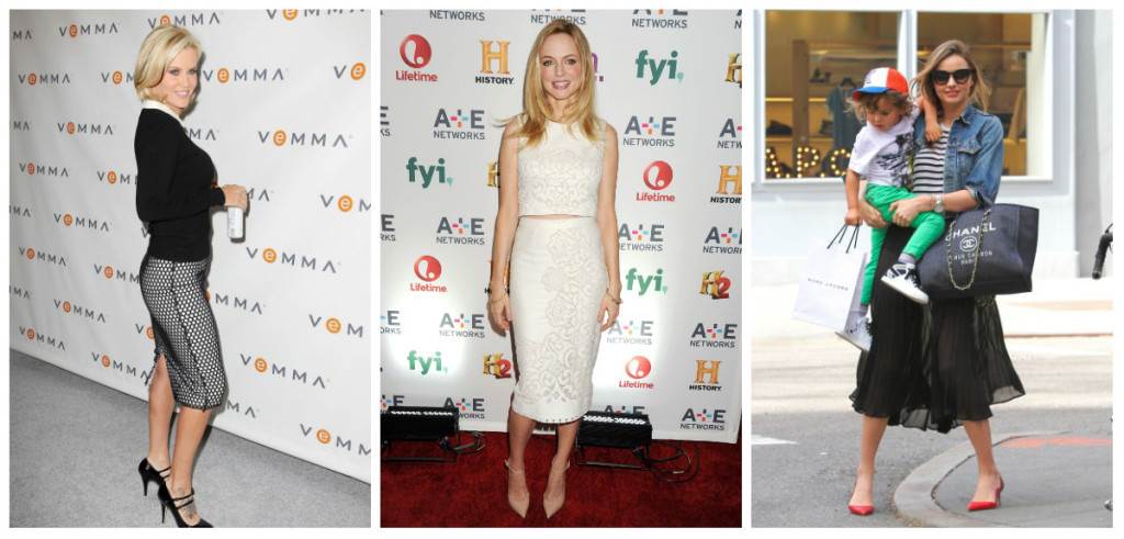 Usku varijantu odabrala je tako glumica Heather Graham za crveni tepih A+E Network Upfronta u New Yorku ranije ovog tjedna. Bijelu usku suknju visokog struka, s reljefnim uzorkom, kombinirala je s topom od istog materijala. Od nakita se odlučila samo za narukvice a cipele je odabrala u nude boji, na visoku petu.