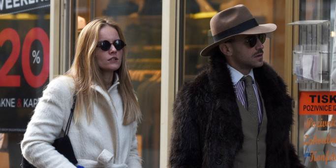 Iako su pohoditelji zagrebačke špice već navikli na svakojaku modnu ekstravaganciju, poneki namjernici ondje i dalje uspijevaju na sebe navući sve poglede – s podignutom obrvom. Miran Kurspahić bio je više nego naočit u raskošnoj, poprilično čupavoj krznenoj bundi koja mu je sezala do ispod koljena, uz košulju, prsluk i kravatu te obavezan šešir. Inače poznata kao osebujna ljubiteljica mode, Nina Mia Čikeš ovaj je put bila samozatajnija od svog dragog u bijelom kaputu do koljena, svezanom u struku, crnim čizmama preko koljena i s crnom trobicom na ramenu. Kao par, itekako su plijenili pozornost, a nisu promakli ni budnom oku našeg fotografa.
