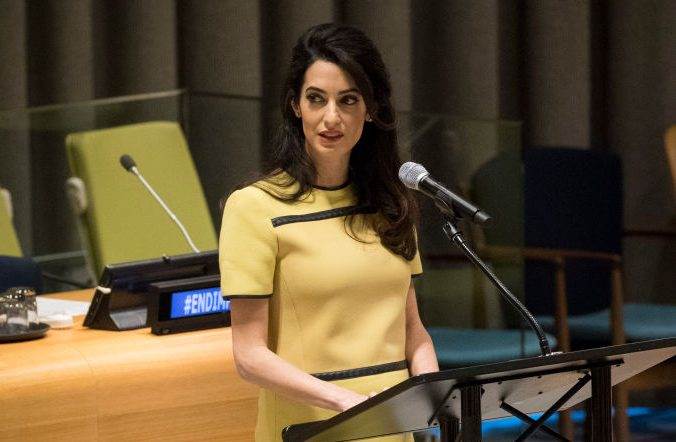 Odjevena u žutu haljinu s crnim obrubom odvjetnica Amal Clooney izgledala je predivno na sastanku u Ujedinjenim narodima u New Yorku. Ta 39-godišnjakinja za govor je izabrala haljinu iz najnovije kolekcije Bottege Venete, koji se pokazala odličnim izborom za trudnu odvjetnicu. Amal i njezin suprug, hollywoodski glumac George Clooney očekuju blizance, a djevojčica i dječak bi trebali doći na svijet u lipnju. Amal koju smatraju jednom od najbolje odjevenih žena današnjice i u trudničkim danima pokazuje odličan modni stil, koji ne može proći nezapaženo.