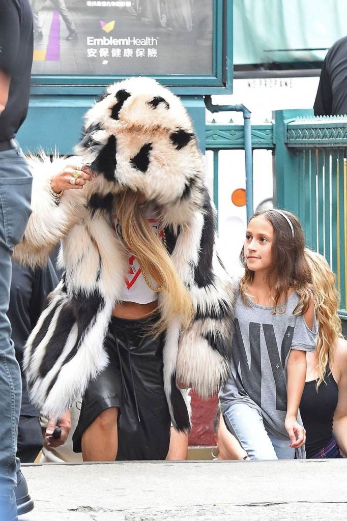 Glazbenica je ispod crno-bijele bunde nosila majicu s natpisom Gucci te crne kožne hlače duljine do ispod koljena. Superseksi 47-godišnjakinja cijelo je vrijeme čvrsto držala ručicu svoje mezimice, koja je svoju slavnu mamu i 'razotkrila'.