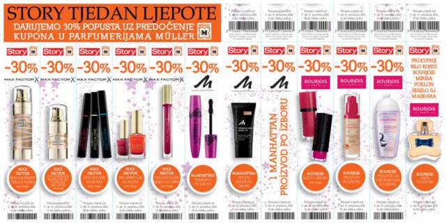 Odlična vijest za sve žene i ljubiteljice kvalitetne kozmetike! Ovaj tjedan darujemo darujemo kupone sa popustima od 30% na brandove Max Factor, Manhattan i Bourjoise.