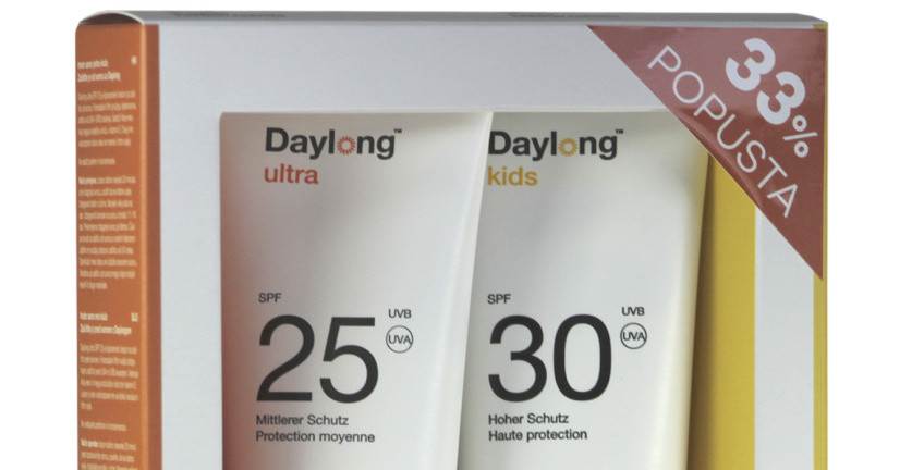 Možete opušteno uživati u aktivnostima na suncu jer smo za Vas i Vaše dijete pripremili poseban paket s 33 % popusta na proizvode; Daylong ultra SPF 25 (100 ml) i Daylong Kids SPF 30 (100 ml). Daylong losioni njeguju i hidratiziraju kožu djelovanjem Aloe vere i vitamina E te štite od oksidacijskih oštećenja. Upotrebom Daylong losiona štitite kožu od štetnog UV-zračenja i isušivanja te zadržavate mladenački izgled svoje kože. Za zaštitu osjetljive dječje kože preporučujemo Daylong Kids SPF 30 koji djelotvorno štiti od UV-zračenja i njeguje dječju kožu djelovanjem glicerola, dekspantenola i vitamina E. Daylong paket s 33% popusta potražite u ljekarnama.