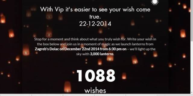 Za sve koji neće moći prisustvovati performansu „Kapulica & lampioni – želje je lakše ispuniti uz Vip!“ 22.12. na tržnici Dolac u Zagrebu, kada će 3.000 papirnatih lampiona biti pušteno u zrak, Vipnet je pripremio posebnu web i mobilnu aplikaciju „Lampioni želja“.