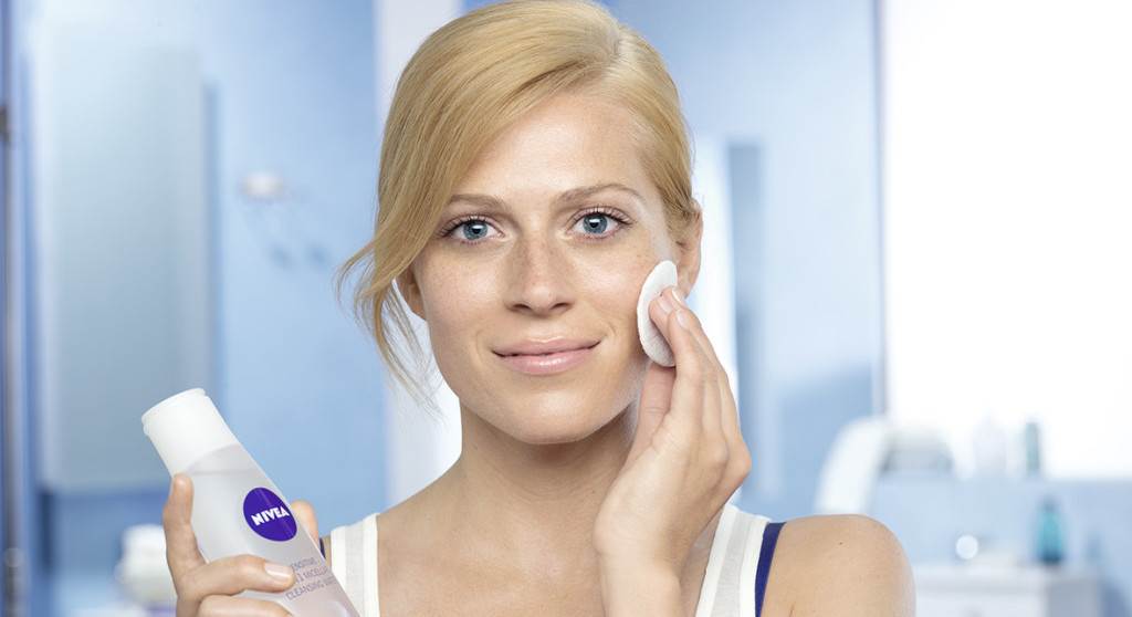 Tri koraka za potpunu njegu kože lica uključuju čišćenje, toniranje te njegu odnosno hidrataciju lica. Za sve žene koje posebnu pažnju posvećuju odstranjivanju ostataka šminke oko očiju tu je NIVEA Double Effect losion za uklanjanje šminke koji djeluje u dvije faze kroz koje nježno čisti i osnažuje trepavice, a uklanja čak i vodootporne slojeve šminke. Za one koje zbog užurbanog načina života ne mogu odvojiti vrijeme za sva tri koraka, NIVEA je razvila 3-u-1 micelarnu otopinu za čišćenje lica koja u samo jednom koraku čisti, uklanja ostatke šminke i hidratizira kožu. NIVEA nudi širok izbor proizvoda za čišćenje koji su posebno kreirani za svaki tip kože. Vrlo je važno odabrati proizvode prikladne našem tipu kože. Svaki NIVEA proizvod za čišćenje sadrži pomno birane sastojke prilagođene određenom tipu kože čime lice priprema za nanošenje dnevne ili noćne kreme. NIVEA proizvodi za čišćenje svih tipova kože: NIVEA Double Effect losion za uklanjanje šminke Odstranjivač šminke oko očiju djeluje u dvije faze te uz pomoć ekstrakta različka učinkovito, ali nježno odstranjuje čak i vodootpornu šminku istovremeno pružajući potrebnu njegu. Njegova dvofazna formula s provitaminom B5 brzo i temeljito uklanja i najotporniju šminku bez trljanja. Preporučena MPC (125 ml): 33,90 kn NIVEA 3u1 micelarna voda za čišćenje lica Inovativna 3 u 1 micelarna voda za čišćenje lica za sve tipove kože s dekspantenolom i uljem sjemenki grožđa čisti, uklanja šminku s lica i područja oko očiju te hidratizira - sve u jednom koraku. Dubinski čisti upravo zahvaljujući iznimno učinkovitoj, a istodobno vrlo blagoj formuli. Zahvaljujući micelarnoj tehnologiji, naknadno ispiranje lica nije potrebno, a sama formula ne utječe na prirodni, zaštitni sloj kože. Preporučena MPC (200 ml); 39,90 kn NIVEA odstranjivač vodootporne šminke Sadrži ekstrakt kamilice i provitamin B5 što ga čini prikladnim za osjetljivo područje oko očiju. Uklanja čak i vodootpornu šminku (bez potrebe za trljanjem) te njeguje i štiti trepavice. Preporučena MPC (125 ml): 33,90 kn NIVEA nježni odstranjivač šminke oko očiju Zahvaljujući formuli koja sadrži provitamin B5 učinkovito uklanja maskaru te nježno čisti i hidratizira osjetljivo područje oko očiju. Preporučena MPC (125 ml): 33,90 kn NIVEA proizvodi za čišćenje normalne i mješovite kože lica Ova linija proizvoda sadrži vitamin E koji djeluje kao antioksidans te Hydra IQ sastojak koji intenzivno hidratizira - za kožu koja zrači svježinom. NIVEA 3-u-1 osvježavajuće maramice za čišćenje lica Nježna formula s vitaminom E dubinski čisti i uklanja čak i vodootpornu šminku te osvježava lice. Preporučena MPC (25 komada): 23,90 kn NIVEA Skin Refining piling Dubinski čisti i otklanja mrtve stanice kože istovremeno održavajući prirodnu razinu hidratacije kože s vitaminom E i Hydra IQ sastojkom. Preporučena MPC (75 ml): 39,90 kn NIVEA osvježavajuća pjena za čišćenje lica Formula s vitaminom E i Hydra IQ sastojkom pruža senzacionalno iskustvo čišćenja lica i ostavlja kožu mekom i osvježenom. Dubinski čisti kožu i hidratizira ju već tijekom samog procesa čišćenja. Preporučena MPC (150 ml): 39,90 kn NIVEA osvježavajući gel za umivanje Dubinski čisti lice i održava prirodnu razinu hidratacije kože uz vitamin E i Hydra IQ sastojak. Nakon čišćenja, lice je spremno za nanošenje dnevne ili noćne kreme. Preporučena MPC (150 ml): 39,90 kn NIVEA osvježavajuće mlijeko za čišćenje Nježna formula s Hydra IQ sastojkom i vitaminom E dubinski čisti lice te održava prirodnu razinu hidratacije kože. Preporučena MPC (200 ml): 39,90 kn NIVEA osvježavajući tonik za čišćenje Osvježavajuća formula s vitaminom E i Hydra IQ sastojkom tonira i hidratizira kožu koja izgleda zdravo i osvježeno. Preporučena MPC (200 ml): 39,90 kn NIVEA 2-u-1 tonik i mlijeko za čišćenje Obogaćeno vitaminom E i Hydra IQ sastojkom dubinski čisti i tonizira kožu dok uklanja nečistoće i šminku. Mlijeko za čišćenje 2u1 hidratizira i održava prirodnu hidrataciju kože. Preporučena MPC (200 ml): 39,90 kn NIVEA proizvodi za čišćenje lica za mješovitu i masnu kožu Linija uključuje posebno lagane formule koje sadrže minerale, vitamine, aminokiseline i antioksidanse. NIVEA Purifying gel za čišćenje lica Sadrži Hydra IQ sastojak, ekstrakt oceanskih algi i čestice za piling za dubinsko čišćenje pora. Aktivno uklanja suvišan sebum kako bi se spriječio neželjeni sjaj i koža blago očistila. Preporučena MPC (150 ml): 39,90 kn NIVEA matirajući tonik Obogaćen Hydra IQ sastojkom i ekstraktom oceanskih algi, uklanja neželjeni sjaj kože te ostavlja prirodan i lijep matirani ten. Preporučena MPC (200 ml): 39,90 kn NIVEA proizvodi za čišćenje lica za suhu i osjetljivu kožu Posebno formulirani proizvodi za suhu kožu s prirodnim, umirujućim uljem badema i Hydra IQ sastojkom štite kožu od dehidracije i gubitka vode. NIVEA 3-u-1 nježne maramice za čišćenje lica Posebno su kreirane za temeljito čišćenje i hidrataciju suhe kože. Formula obogaćena bademovim uljem i Hydra IQ sastojkom nježno čisti i uklanja šminku. Preporučena MPC (25 komada): 23,90 kn NIVEA umirujuća pjena za čišćenje lica Formula s prirodnim uljem badema i Hydra IQ sastojkom pruža senzacionalni užitak čišćenja te kožu ostavlja nježnom i mekom. Dubinski čisti i hidratizira suhu kožu. Preporučena MPC (150 ml): 39,90 kn NIVEA nježna krema za čišćenje lica Čisti suhu kožu lica na učinkovit i nježan način bez isušivanja kože. Formula sadrži Hydra IQ sastojak i ulje badema te pruža koži dodatnu hidrataciju i time joj pomaže da ostane meka. Preporučena MPC (150 ml): 39,90 kn NIVEA nježno mlijeko za čišćenje lica Formula s prirodnim uljem badema i Hydra IQ sastojkom dubinski čisti i hidratizira suhu kožu koju treba dobro hidratizirati jer je sklona gubitku vlage