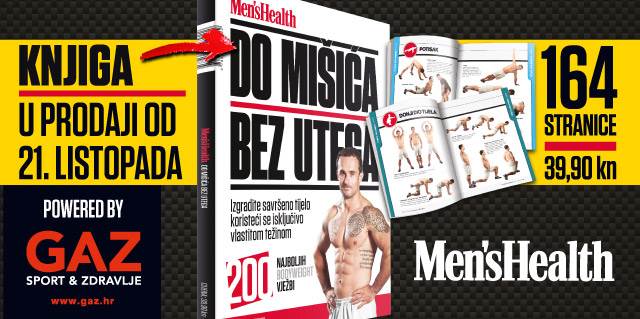 Rekvizit koji nam je pri ruci i kojim možemo napraviti nevjerojatne rezultate jest naše vlastito tijelo. Pogledajte samo vrhunske gimnastičare koliko su snažni, kako izgledaju i kakve sve vježbe mogu izvoditi. Njima je glavni otpor kojim vježbaju vlastito tijelo. To dovodi do poboljšanja odnosa jakosti prema vlastitoj tjelesnoj težini. Ako gledamo kombinaciju jakosti, snage, dobro izgrađenog tijela, koordinacije, ravnoteže, fleksibilnosti, mobilnosti, eksplozivnosti, preciznosti, agilnosti i okrtenosti, tada gimnastičari spadaju u sam sportski vrh. Vježbe koje gimnastičari rade funkcioniraju za svakoga tako da prosječan rekreativac može imati velike koristi od njih. Većina vježbi vlastitim tijelom može se lako izvesti i naučiti. Da ne lutate okolo i tražite vježbe za pojedine dijelove tijela te se opterećujete time kako to ubaciti u program treninga, Men's Health i Marino Bašić, vlasnik fitness centara Basic Gym One i Id Est Cross Fit te trener u American Top Team-u Zagreb, napravili su kratku „enciklopediju“ vježbi s uputama što i kako. Knjiga je namijenjena rekreativcima, kondicijskim i fitness trenerima te profesionalnim sportašima. Izgradite savršeno tijelo koristeći se isključivo vlastitom težinom i otkrijte 200 najboljih bodyweight vježbi na 164 stranice Men's Health knjige Bez mišića do utega powered by GAZ! Potražite na svim kioscima od 21. listopada 2015. godine po cijeni od 39,90 kuna!