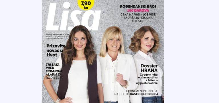 Tjedni meni po izboru domaćih gastroblogerica; kako prizvati novac u svoj život, chic moda za radni dan; kako vratiti vitalnost u život..., samo su neke od tema o kojima možete čitati u Lisi. Posebno za ovo rođendansko izdanje, naslovnicu magazina Lisa krase i tri dame koje svojim primjerima i pričama pokazuju da godine nisu bitne: glumica Sanja Vejnović, pjevačica i voditeljica Sanja Doležal te bivša manekenka i danas uspješna poslovna žena Sandra Vranješ koje su se složile da im godine ništa ne mogu. Kakve još vrijedne darove i ostale zanimljive teme donosi ovotjedno rođendansko izdanje, provjerite za samo 7,90 kuna.