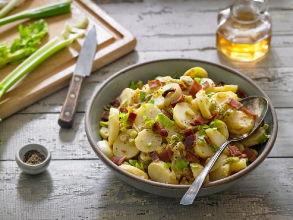 Naime, poznati chef s krumpir salatom kombinira aromatične začine, grčki jogurt i senf te hrskavu slaninu ili pancetu što je čini pravom gurmanskom poslasticom.